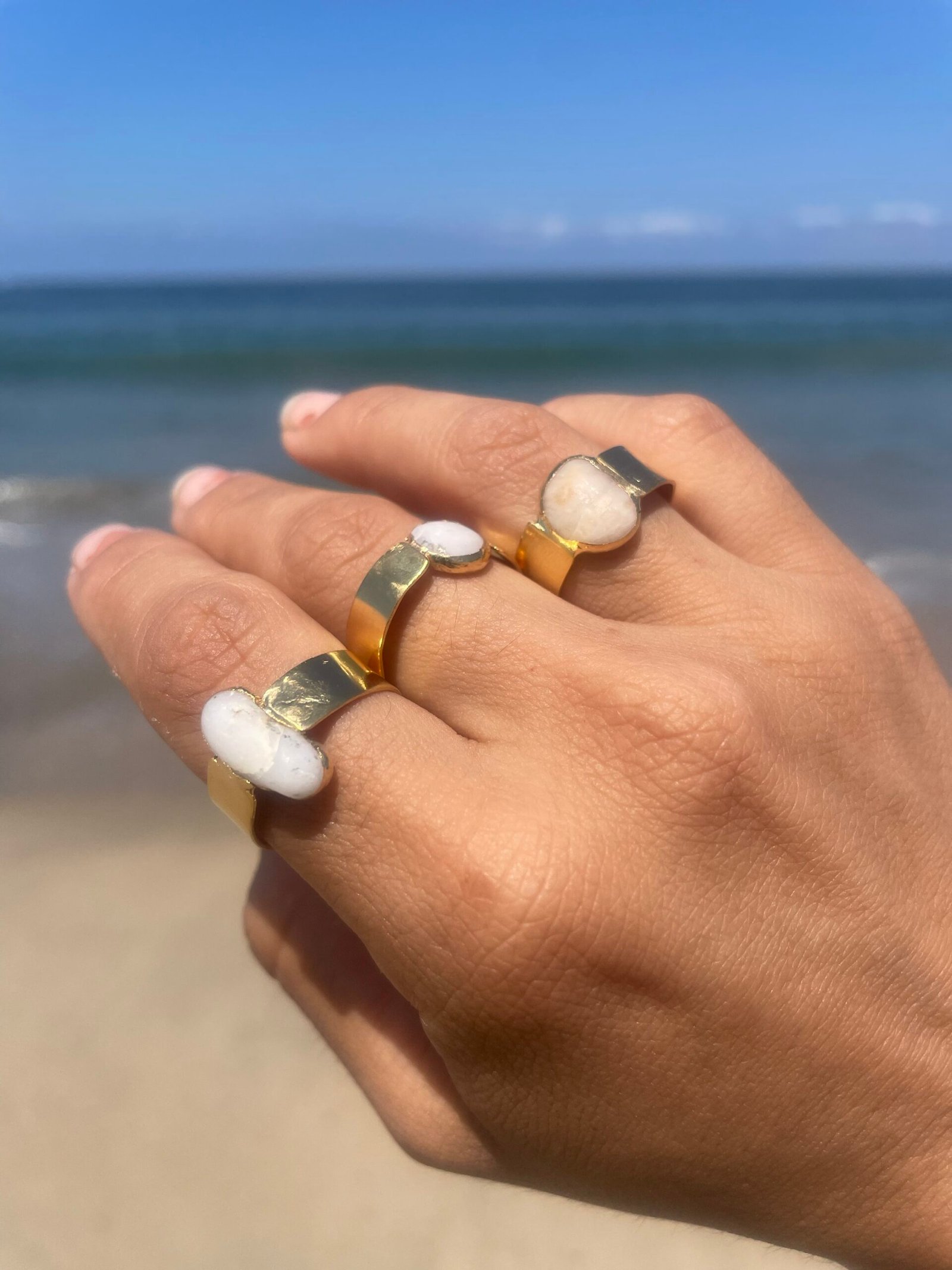 Anillo cuarzo pulido por el mar